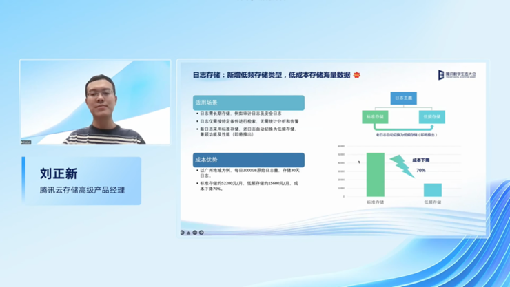 针对日志数据价值延伸,腾讯云CLS也具有一系列新特性。据腾讯云存储高级产品经理刘正新介绍,在采集方面,CLS与容器服务深度融合,同时兼容开源采集组件和协议,解决了日志数据分散,采集复杂耗时等问题;在结构化方面,其同时提供采集侧+平台侧结构化的能力,帮助用户低成本统一日志结构;在存储方面,CLS新增了低频存储类型,以实现海量数据的低成本存储;在查询方面,CLS在传统搜索引擎技术基础上引入时序索引概念,提升检索性能20-40倍,此外还新增了定时SQL分析功能,聚合原始日志,保留统计结果。