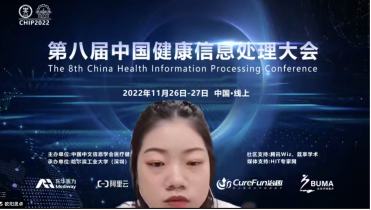 2022年11月26日-27日,由中国中文信息学会(CIPS)医疗健康与生物信息处理专业委员会(以下简称“专委会”)主办,哈尔滨工业大学(深圳)承办的第八届中国健康信息处理大会(CHIP 2022)以在线方式成功举办。