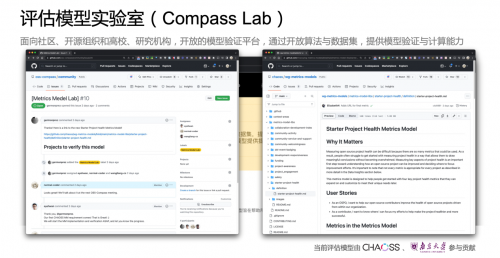 南京大学为 OSS Compass 的评估模型提供了理论支撑。南京大学副教授汪亮在解读 OSS Compass 开源生态健康模型理论时表示,只要依托扎实的理论和模型基础,就能够科学、完整地刻画开源项目和生态健康的相关属性及其关联。他还从理论和概念模型、度量指标体系、计算模型、验证评估四个方面对 OSS Compass 的可信性、可用性进行了论证。