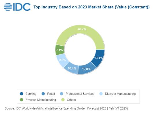 据行业分析机构IDC最新报告,2023年全球人工智能(包括以人工智能为中心的系统的软件、硬件和服务)支出在2023年将达到1540亿美元,同比增长26.9%。