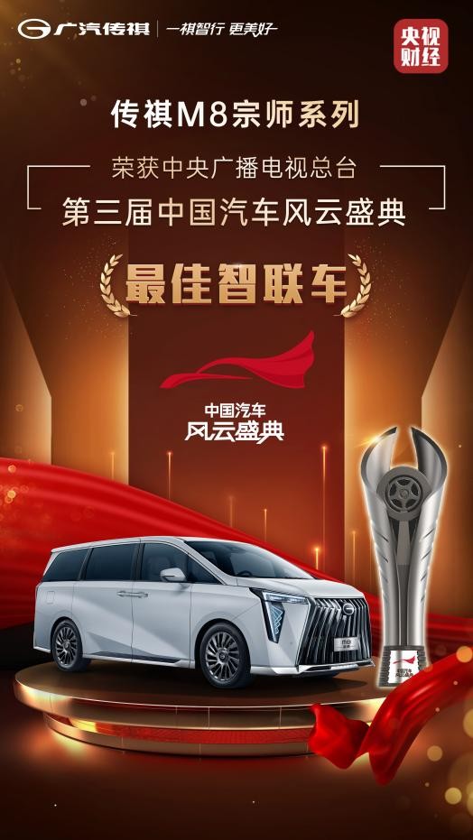 4月7日晚,万众瞩目的中央广播电视总台2023第三届《中国汽车风云盛典》盛大举行,获奖榜单正式揭晓,广汽传祺M8宗师系列凭借超感交互智能座舱,领先的智能驾驶科技,在32款入围车型中脱颖而出,一举斩获“最佳智联车”大奖!