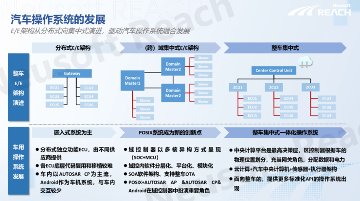 我们首先看一下整个行业的发展,这个图是汽车的架构发展情况,我们关注的E/E架构变革所带来的软件变化情况。