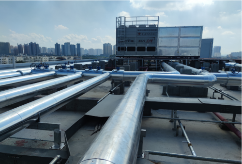 机房的动力系统耗能较高,为了降低能耗,减少碳排放,来宾移动积极响应国家“双碳”目标,云数据中心运用了蒸发冷凝冷水机组+末端空调系统解决方案。蒸发冷凝器为扬程的冷却水循环系统,大大节省了水的输送能耗和水损失。末端采用RDS智能管控系统,运用大数据的分析以及机器学习算法有效测算机房温度,以最可靠的组合模式实现系统的安全启停、实时监控、动态优化、在线调节能耗。采用蒸发冷凝冷水智能技术后,年可以节约制冷系统能耗15%,年省电量超30万度。