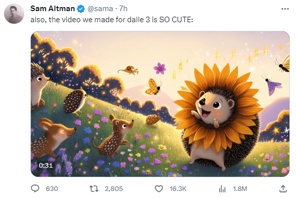 关于 DALL·E 3 更多细节,Sam Altman 还分享了一个可爱的宣传视频。