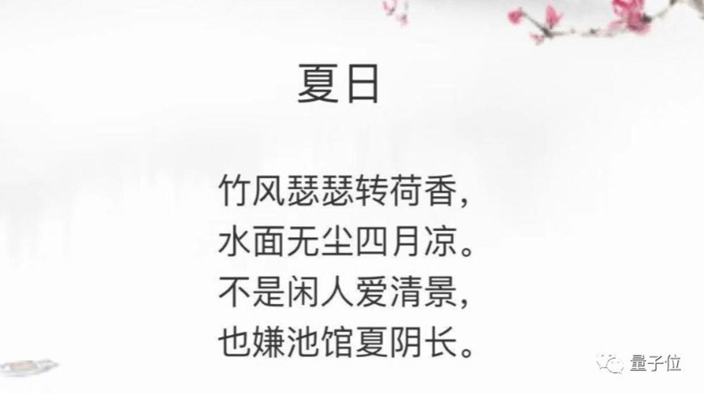 两个AI都有瑕疵的地方,清华九歌一张嘴就开始说“秋来”,华为乐府也提到了“四月”,并没有特别的意思,显然都与夏日有些出入。