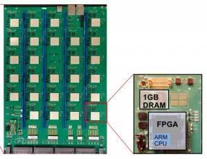 每个节点均有一个Xilinx Zynq单片系统(一个双核ARM A9处理器与一个FPGA在同一芯片上配对)以及1GB专用RAM芯片。