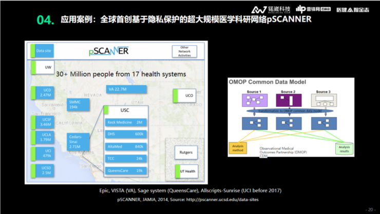 下图是我们在2012年开始做的全球首创的隐私保护超大规模医疗科研网络,通过隐私计算覆盖了美国3000多万病人,这些病人来自17个医疗系统,覆盖200多家医院。